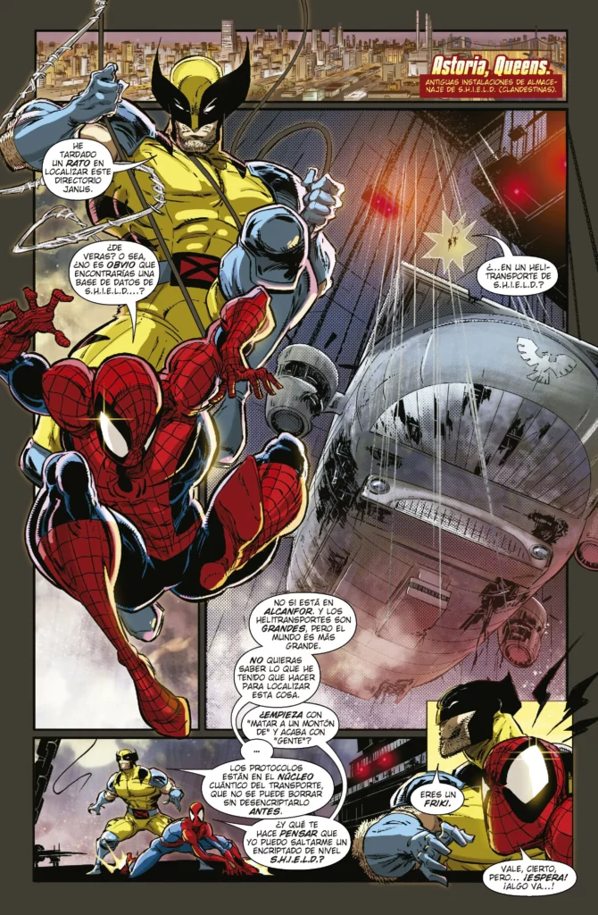 Obviamente, no hablo de otro más que Peter Parker, Spiderman. Y sin parar a pensárselo, acompaña a Lobezno a un lugar donde la extinta S.H.I.E.L.D. guardaba el deseado listado de espías.